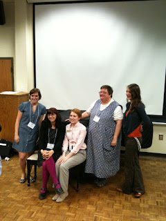 That's EllenBess, Melissa, Ivy, Doris and Cate moments after they gave their presentations at the Student Scholarship Showcase at Lander last week. Excellent students were selected from all areas in the College of Arts and Humanities to give presentations about their own research in the humanities. These ladies represented the Visual Arts and they did a great job of putting together fine presentations with very short notice while juggling project deadlines for their other classes. They all did a superb job and Doris and Cate made sure that the three-dimensional areas were well represented. I was proud.